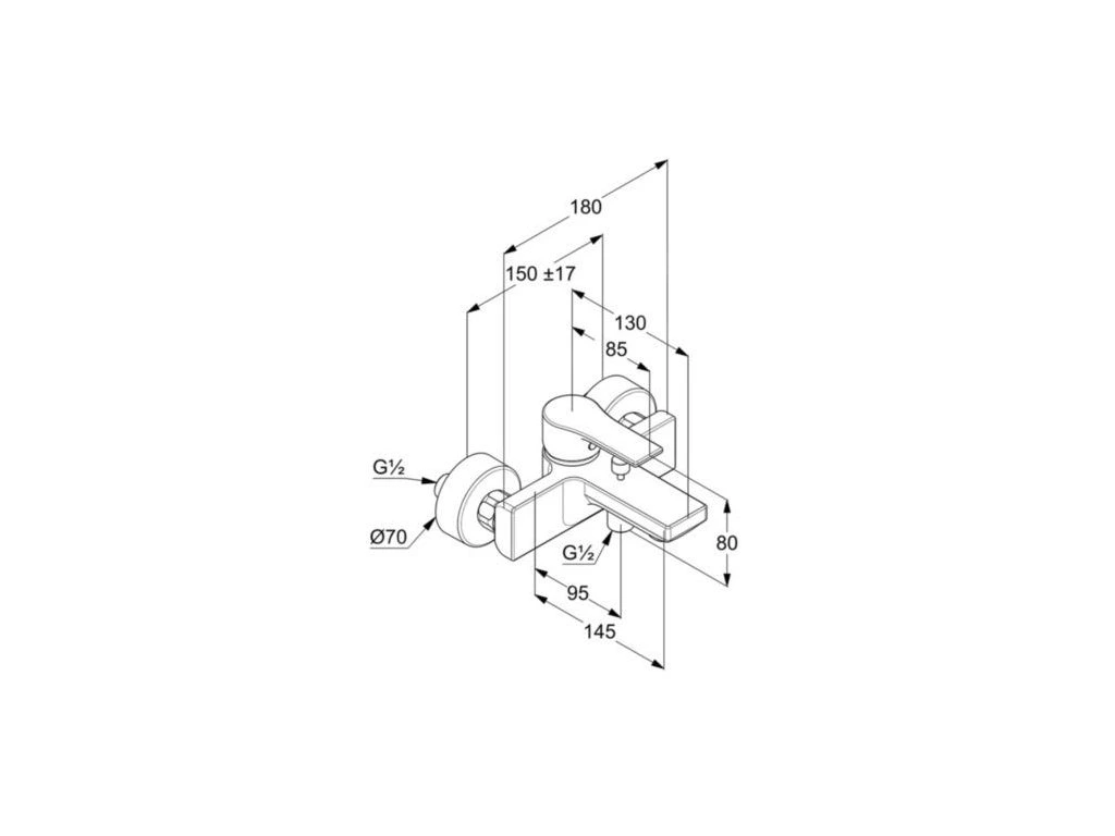 Šířka baterie je 180 mm, délka výtoku 145 mm. Baterie obsahuje perlátor M 24 x 1 a keramickou kartuši s možností omezení maximální teploty vody. Je zabezpečena proti zpětnému nasátí vody. Nechybí automatický přepínač sprcha/vana.