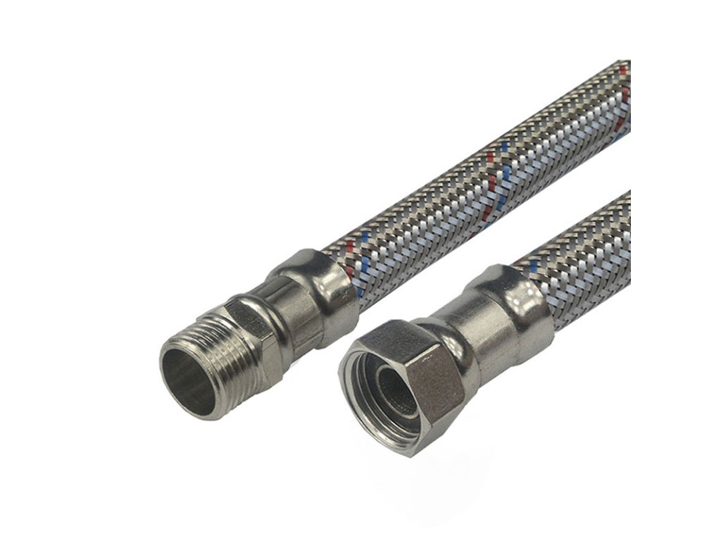Nerezová připojovací hadice k přívodu teplé a studené vody 500mm s maximálním tlakem do 10 bar a provozní teplotou max. 95 °C