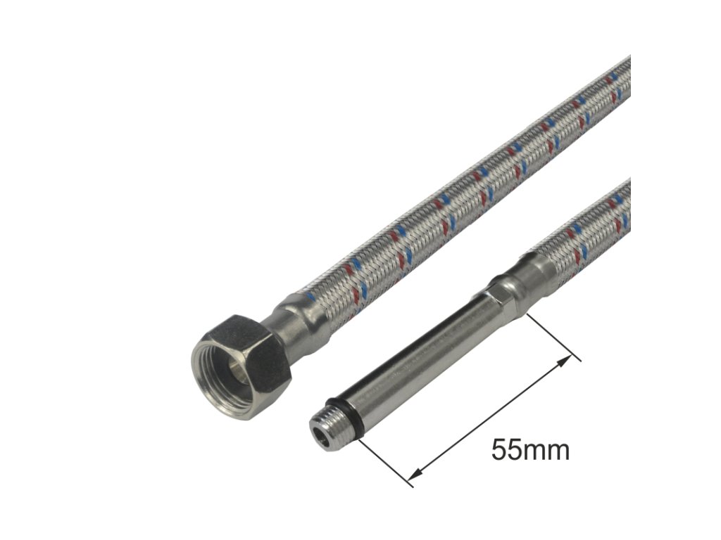 Nerezová připojovací hadice k přívodu teplé a studené vody 500mm s maximálním tlakem do 10 bar a provozní teplotou max. 95 °C