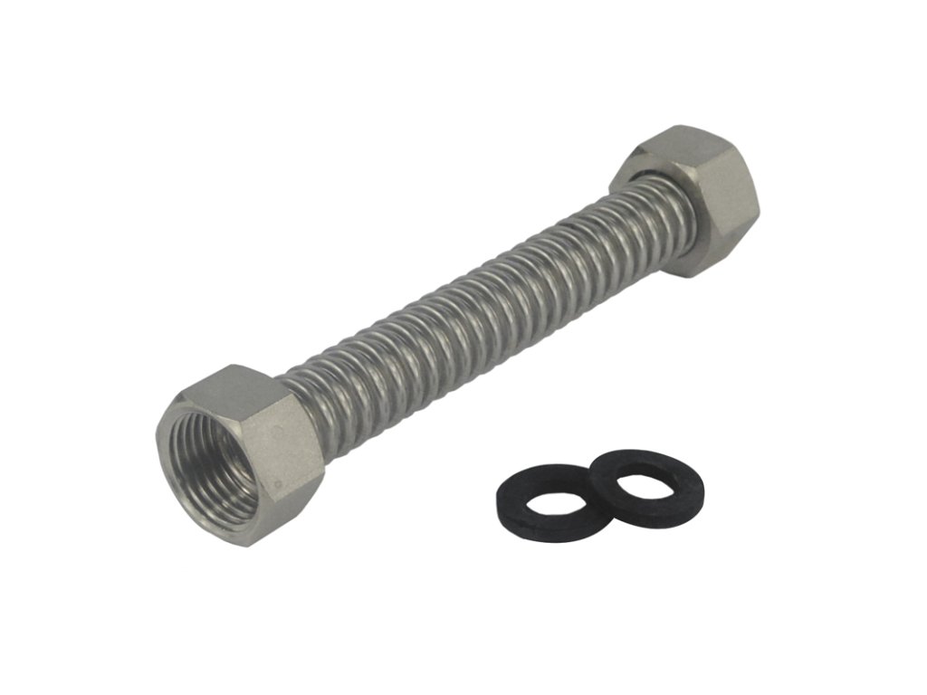 Vysoce kvalitní, pružný nerezový vlnovec s pevnostními maticemi a těsněním. Slouží ke spojení topných a vodovodních systémů, kde je potřeba docílit pěkného vzhledu. Vlnovcové trubky jsou vyrobeny z kvalitní nerezové oceli AISI 304.Doplňkové parametry