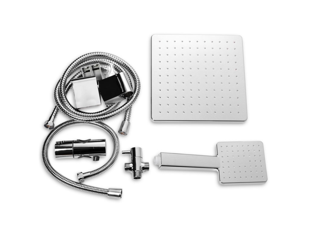 Obsah balení: Hadice 150 cm, hlavová sprcha 22x22cm, ruční sprcha 23x10cm, rozety, excentrické přípojky, gumové t