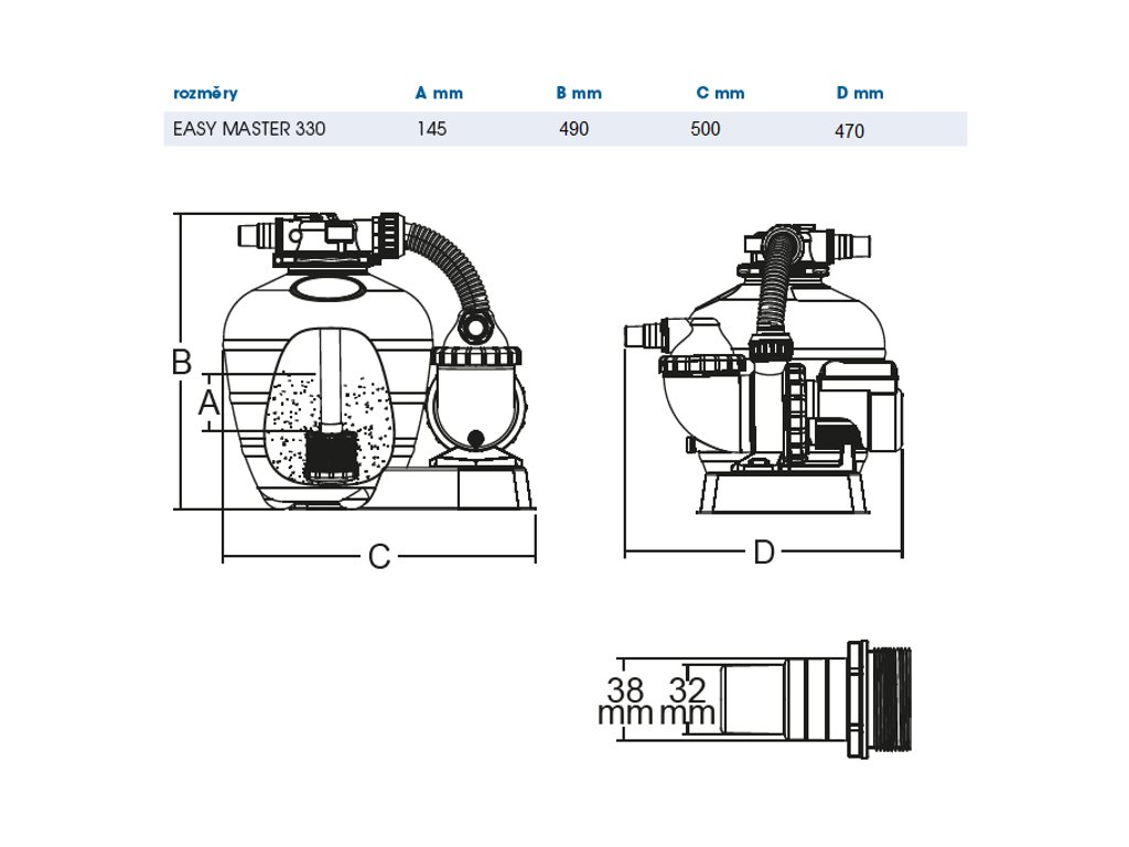 Písková COMBO filtrace EASY MASTER je navržena zejména pro levné nadzemní bazény. Nabízí ekonomické řešení s uživatelsky přívětivým řešením. Toto čerpadlo je samozřejmě vybaveno i předfitračním košem pro mechanické nečistoty. Nádoba je vyrobena z trvanlivého HDPE plastu s UV filtry pro venkovní užití. Vhodné pro slanou i sladkou bazénovou vodu.