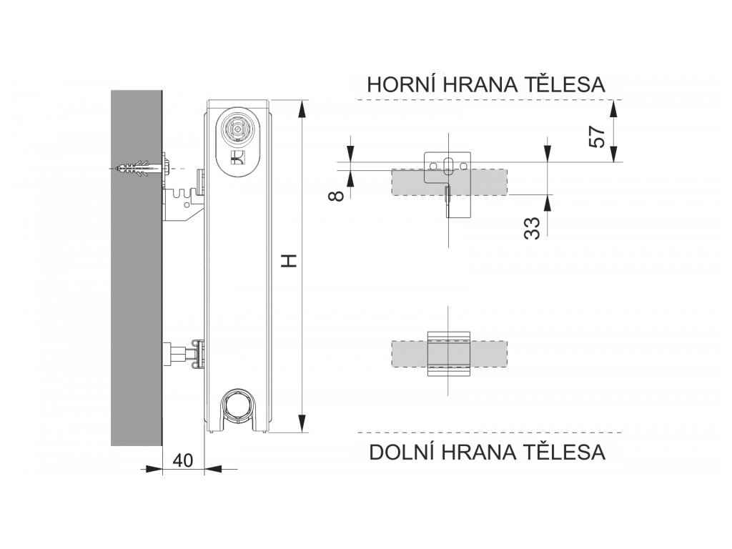 • umožňuje upevnění na stěnu ve vzdálenosti D = 40 mm od stěny