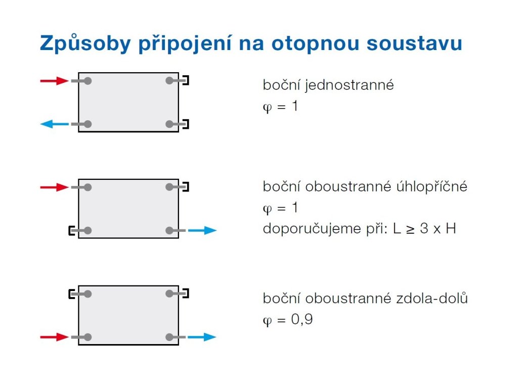Všechna otopná tělesa jsou vybavena odvzdušňovací zátkou a příslušným počtem zaslepovacích zátek. Všechny vývody u deskových otopných těles RADIK mají stejný průměr s vnitřním závitem G 1/2.