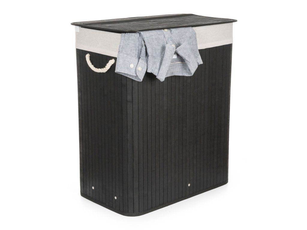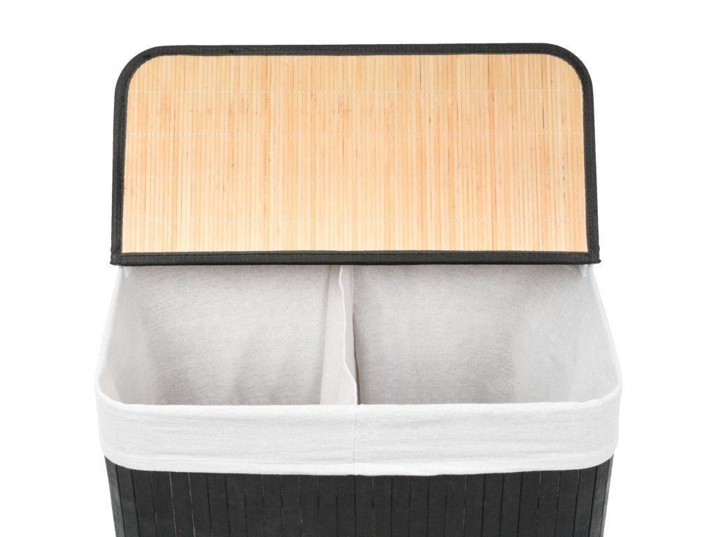 Koš na prádlo G21 105 l s rozdělovačem, bambusový černý s bílým košem, 63555162