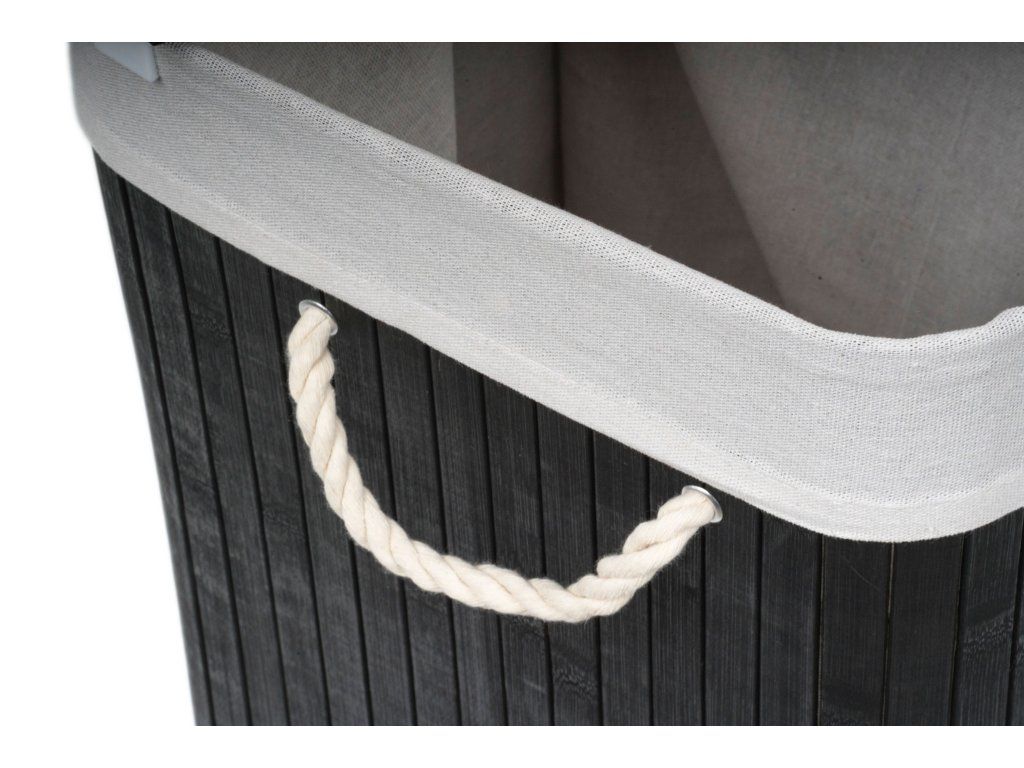 Bambusový koš G21 s pevným víkem má pratelnou látkovou vložku, rozdělenou na dva samostatné oddíly. Špinavé prádlo tak můžete třídit už před praním a umístit zvlášť kousky podle materiálu nebo barvy.