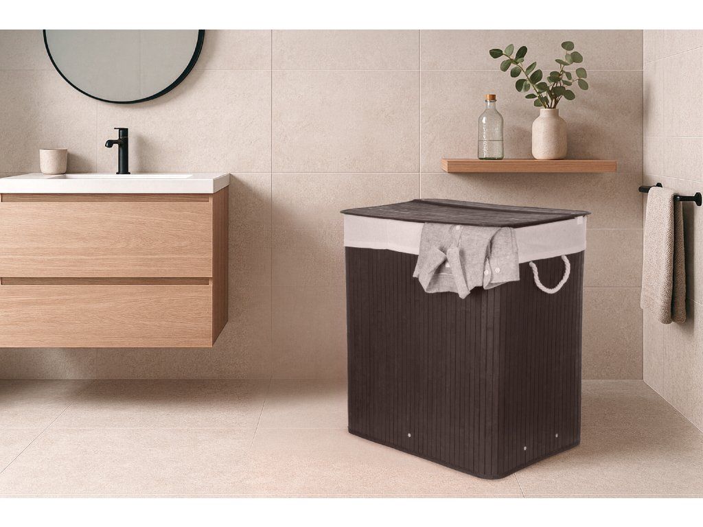 Bambus je překvapivě lehký, takže koš můžete snadno přenášet. Zároveň je ale dostatečně pevný, takže unese i těžkou zátěž, když je naplněn prádlem. Jednou z výborných vlastností bambusového dřeva je navíc jeho velká odolnost vůči vlhkosti. Pokud tedy hledáte prádelní koš, který nepodlehne vlhkému prostředí koupelny, je pro vás bambusový koš na špinavé prádlo s objemem 3 x 50 l jasnou volbou. Jeho další předností je přirozená odolnost vůči bakteriím a plísním, což je u určení koše na špinavé prádlo velmi výhodné.