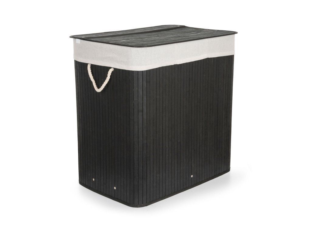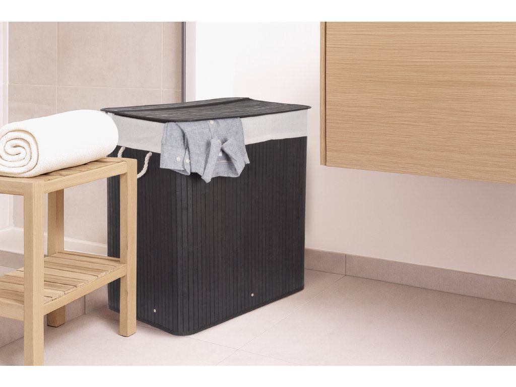 Koš na prádlo G21 150 l s rozdělovači, bambusový černý s bílým košem, 63555172