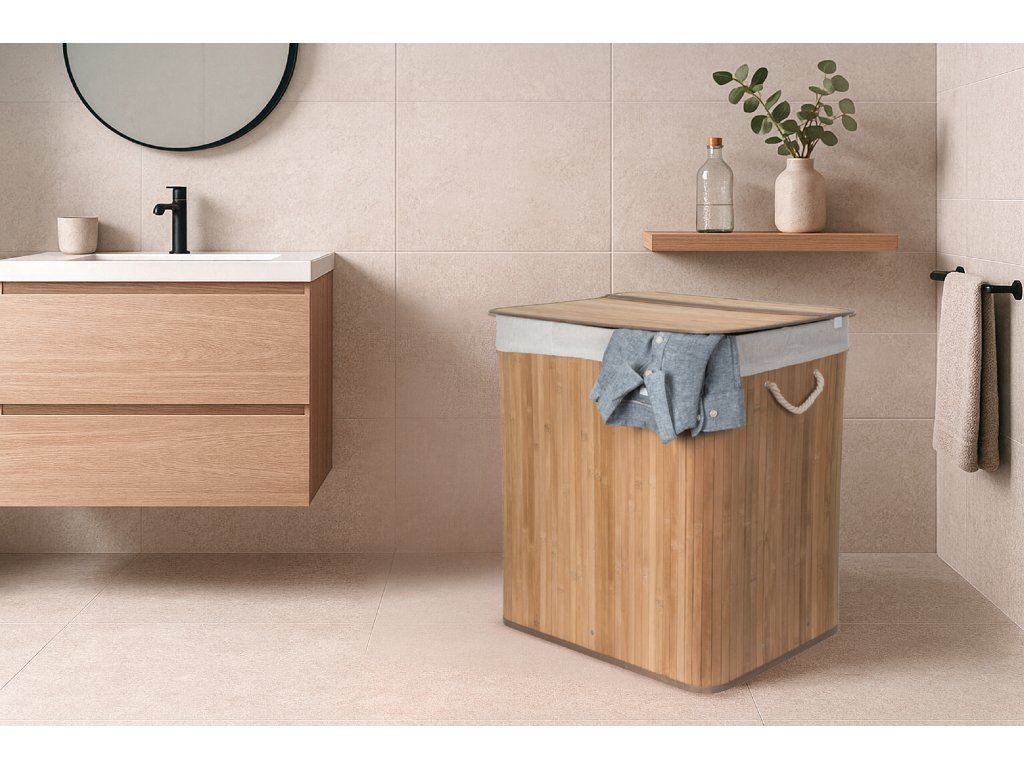 Bambus je překvapivě lehký, takže koš můžete snadno přenášet. Zároveň je ale dostatečně pevný, takže unese i těžkou zátěž, když je naplněn prádlem. Jednou z výborných vlastností bambusového dřeva je navíc jeho velká odolnost vůči vlhkosti. Pokud tedy hledáte prádelní koš, který nepodlehne vlhkému prostředí koupelny, je pro vás bambusový koš na špinavé prádlo s objemem 3 x 50 l jasnou volbou. Jeho další předností je přirozená odolnost vůči bakteriím a plísním, což je u určení koše na špinavé prádlo velmi výhodné.