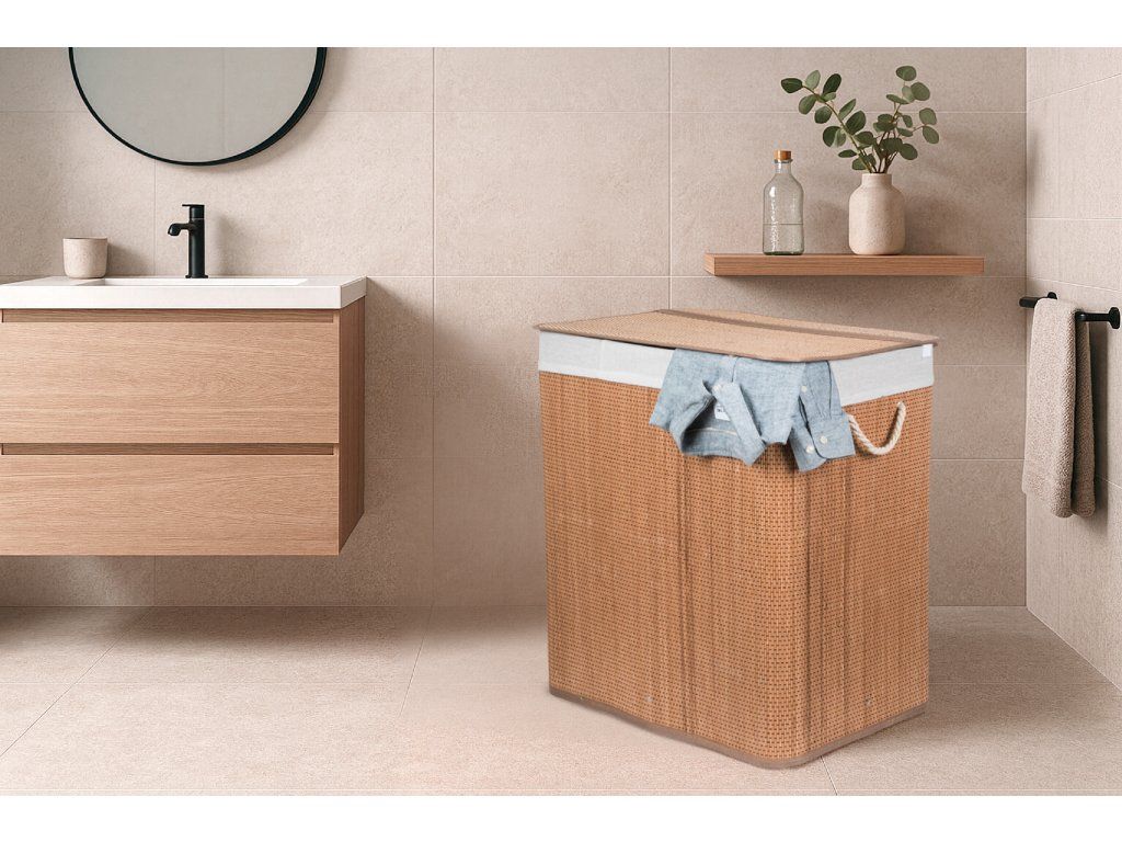 Bambus je překvapivě lehký, takže koš můžete snadno přenášet. Zároveň je ale dostatečně pevný, takže unese i těžkou zátěž, když je naplněn prádlem. Jednou z výborných vlastností bambusového dřeva je navíc jeho velká odolnost vůči vlhkosti. Pokud tedy hledáte prádelní koš, který nepodlehne vlhkému prostředí koupelny, je pro vás bambusový koš na špinavé prádlo s objemem 3 x 50 l jasnou volbou. Jeho další předností je přirozená odolnost vůči bakteriím a plísním, což je u určení koše na špinavé prádlo velmi výhodné.