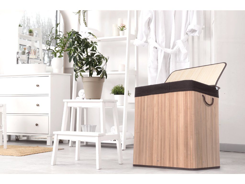Bambus je překvapivě lehký, takže koš můžete snadno přenášet. Zároveň je ale dostatečně pevný, takže unese i těžkou zátěž, když je naplněn prádlem. Jednou z výborných vlastností bambusového dřeva je navíc jeho velká odolnost vůči vlhkosti. Pokud tedy hledáte prádelní koš, který nepodlehne vlhkému prostředí koupelny, je pro vás bambusový koš na špinavé prádlo s objemem 3 x 50 l jasnou volbou. Jeho další předností je přirozená odolnost vůči bakteriím a plísním, což je u určení koše na špinavé prádlo velmi výhodné.