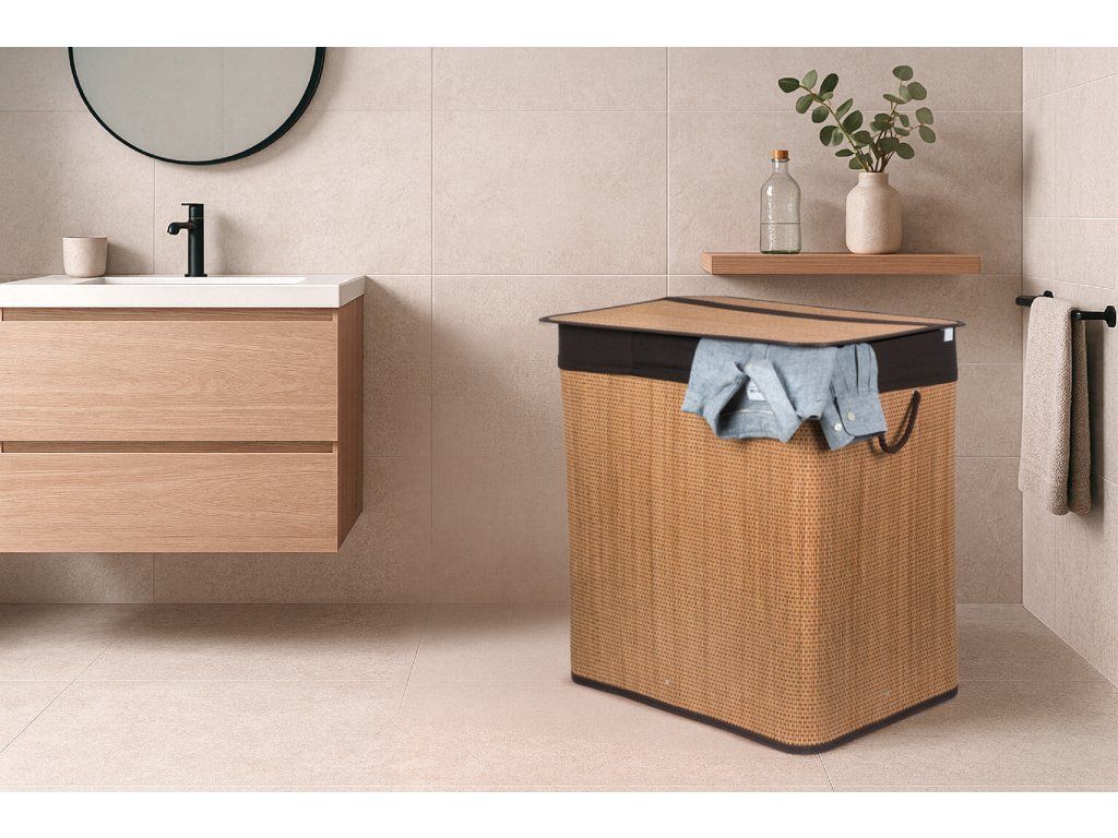 Koš na prádlo G21 150 l s rozdělovači, bambusový s hnědým košem, 63555174