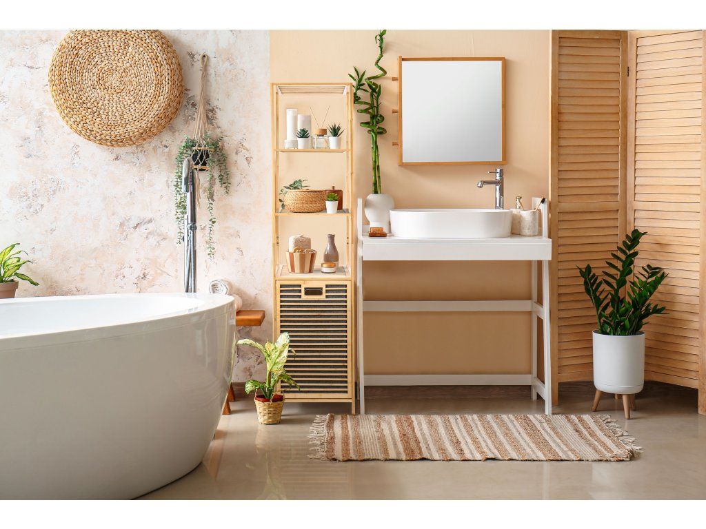 Bambusový koupelnový regál s košem na prádlo dodává interiéru příjemný přírodní dojem. Jeho jemné a teplé barvy mohou oživit a doplnit jakýkoliv prostor bez ohledu na jeho styl – skvěle ladí s rustikálním i moderním nebo minimalistickým interiérem, přizpůsobí se stylu vašeho domova.