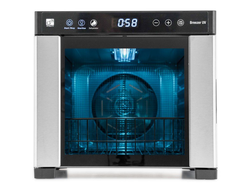 Vnitřní nerezový koš vám umožní využití sušičky na maximum. Do koše můžete vkládat předměty na dezinfekci UV světlem, využijete jej i pro uložení skleniček při přípravě domácího jogurtu v sušičce potravin, sušení pečiva na strouhanku a podobně.
