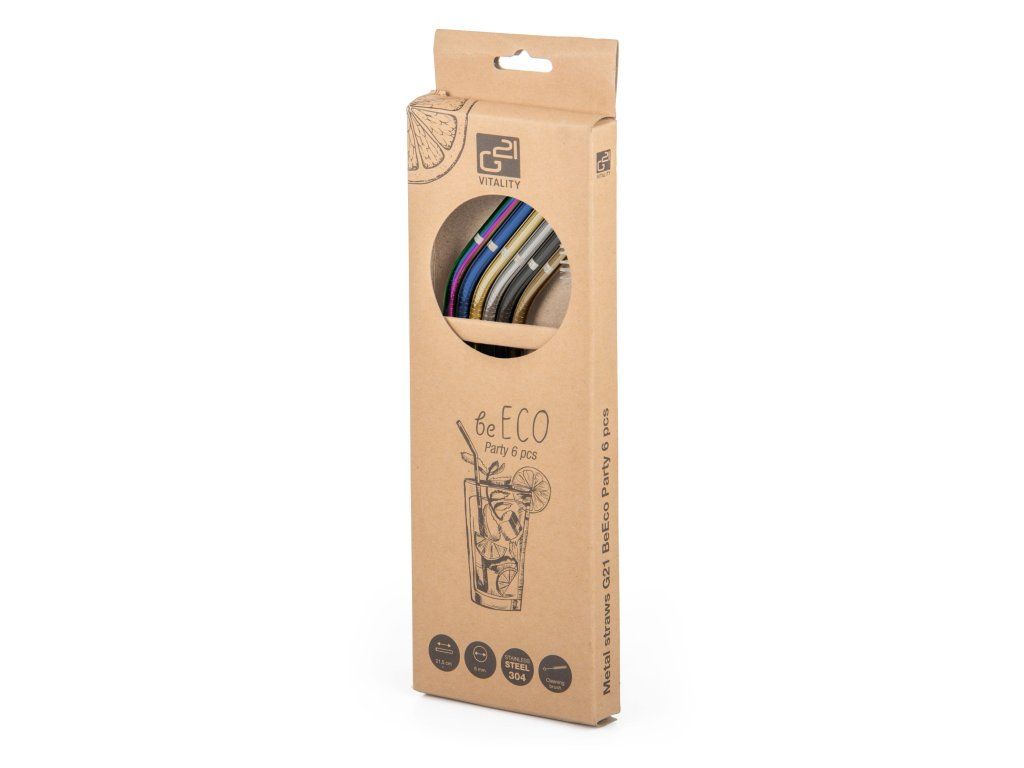 Pořiďte si elegantní, odolné, stylové a především ekologické slámky na pití z nerezu. V sadě najdete 6 zahnutých nerezových brček G21 BeEco Party o průměru 6 mm a délce 21,5 cm a kartáček na čištění. V nabídce máme i brčka rovná, prohlédnout si je můžete zde.