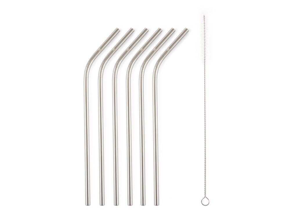 Kovová brčka G21 BeEco Party 6 ks stříbrná, zahnutá + kartáček na čištění, 6352101