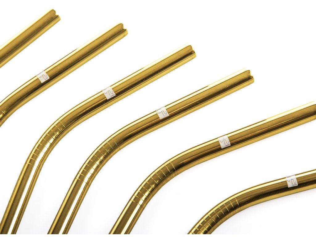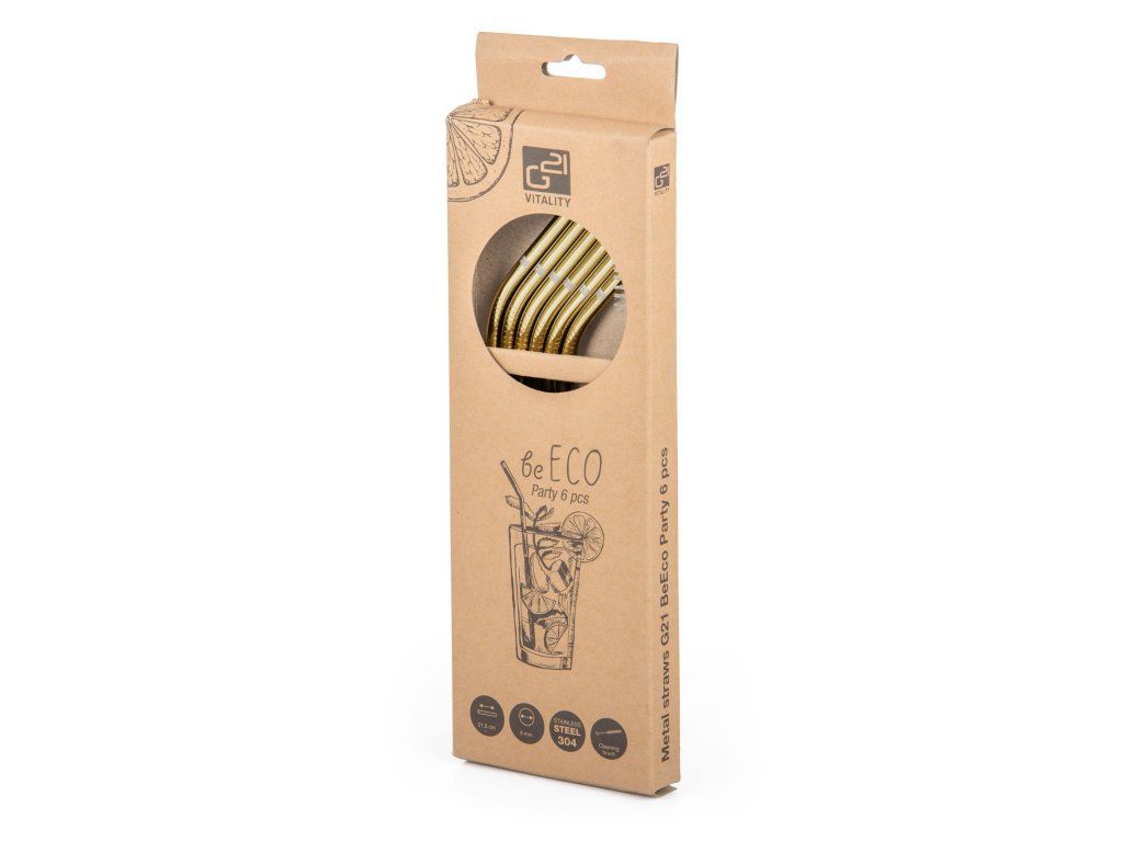 Kovová brčka G21 BeEco Party 6 ks zlatá, zahnutá + kartáček na čištění, 6352107