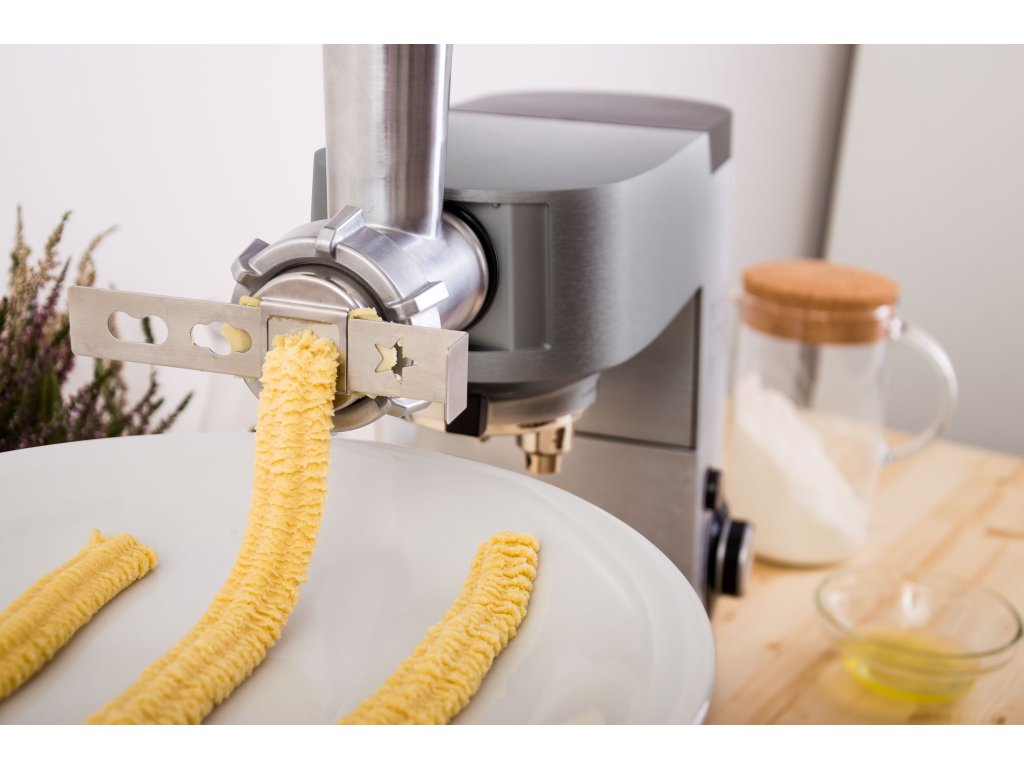 Příslušenství na výrobu klobás – vyměňte destičku z mlýnku za nástavec na klobásy a výroba klobás může začít. Nezapomeňte si ke klobáse ukrojit voňavý domácí chléb, se kterým vám pomohl hnětací hák.