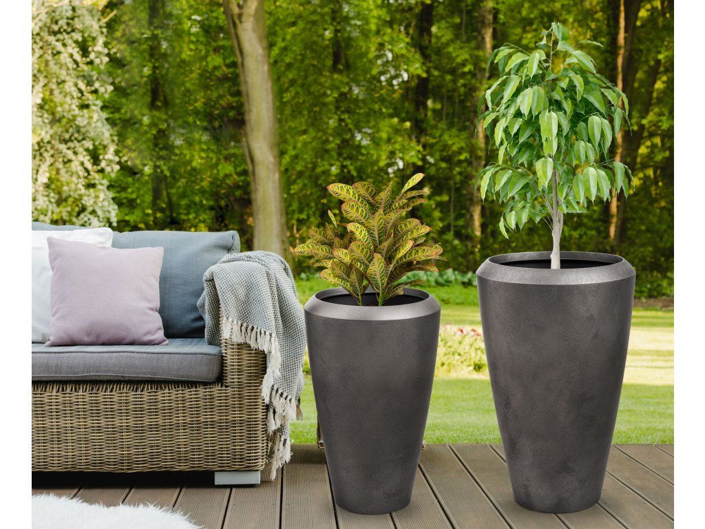 Květináč je vyrobený z kvalitního 0,6 cm silného plastového materiálu s UV filtrem, který vás nelimituje ani co se týče umístění, ani užívání. Květináč je lehký a zároveň výjimečně odolný vůči povětrnostním vlivům. Nemusíte uklízet květiny pod střechu při každé letní spršce ani při silném větru. Naopak vám letní déšť pomůže s údržbou. Květináč můžete na zahradě nechat i v zimě – je odolný vůči mrazu až do -35 °C. Stěny květináče stačí při znečištění opláchnout vodou a je zase jako nový.