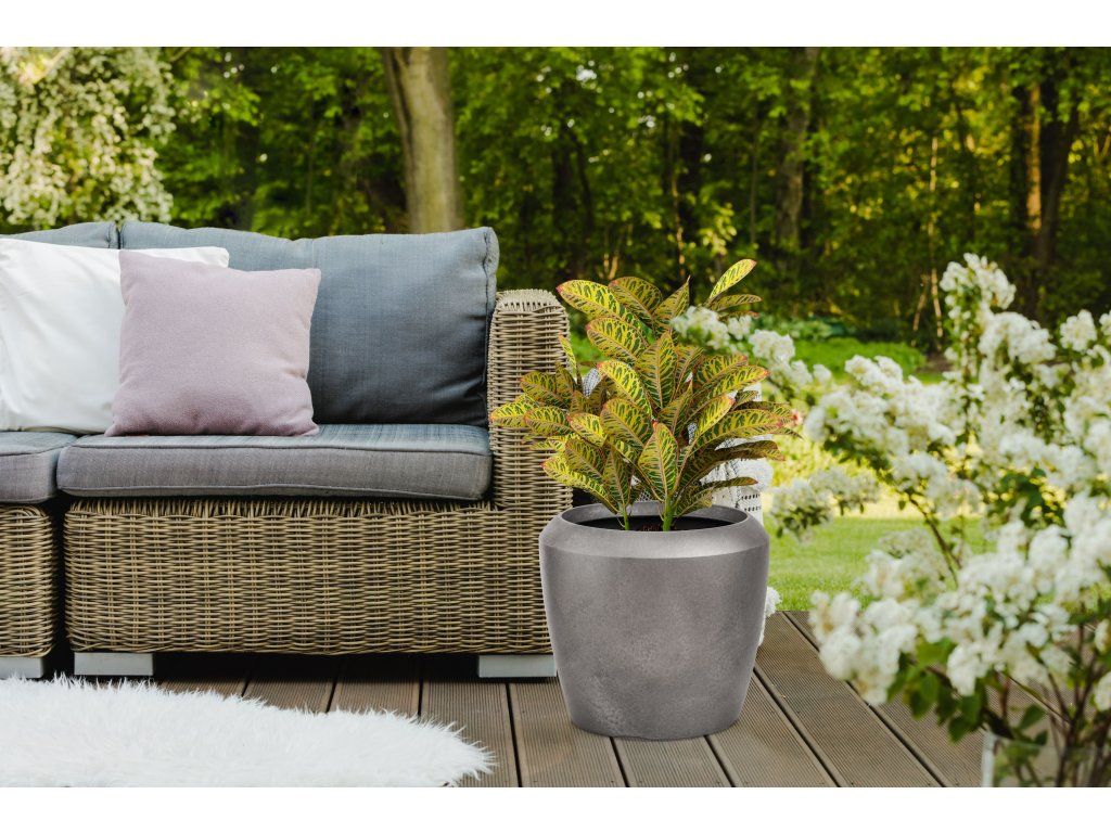 Květináč je vyrobený z kvalitního 0,6 cm silného plastového materiálu s UV filtrem, který vás nelimituje ani co se týče umístění, ani užívání. Květináč je lehký a zároveň výjimečně odolný vůči povětrnostním vlivům. Nemusíte uklízet květiny pod střechu při každé letní spršce ani při silném větru. Naopak vám letní déšť pomůže s údržbou. Květináč můžete na zahradě nechat i v zimě – je odolný vůči mrazu až do -35 °C. Stěny květináče stačí při znečištění opláchnout vodou a je zase jako nový.