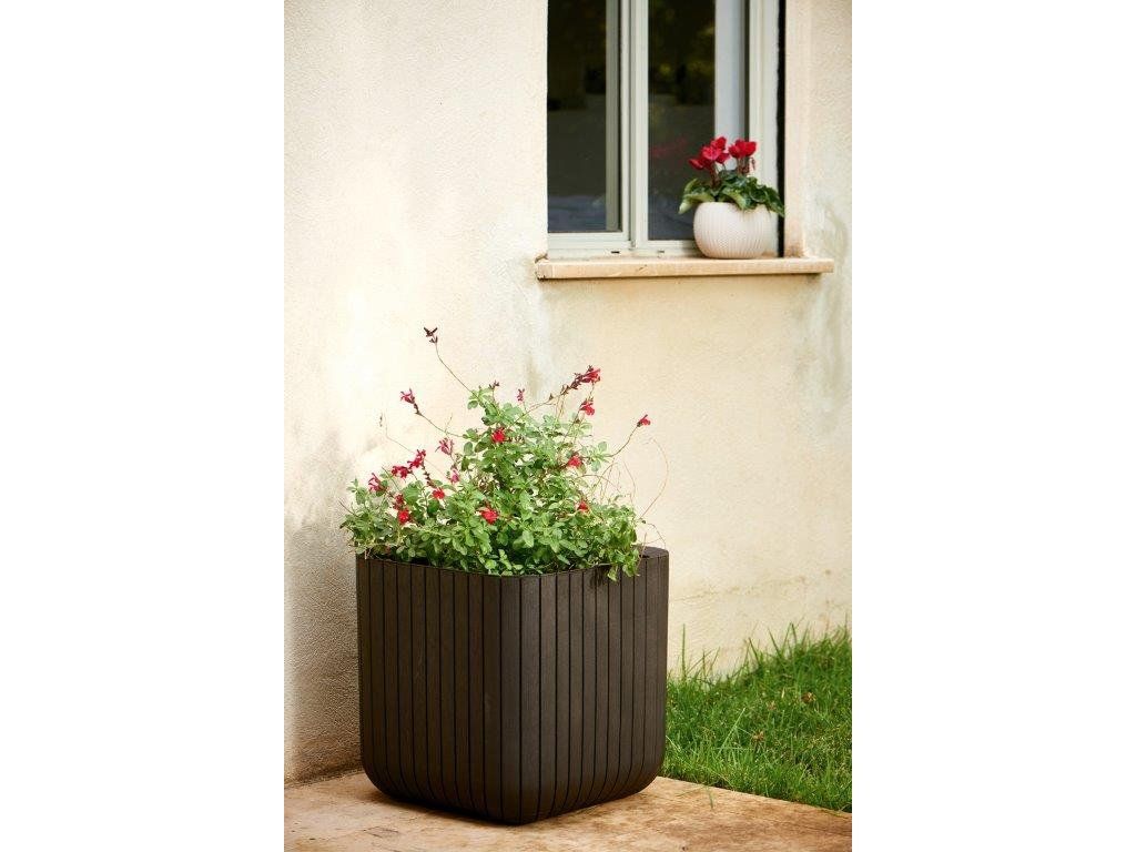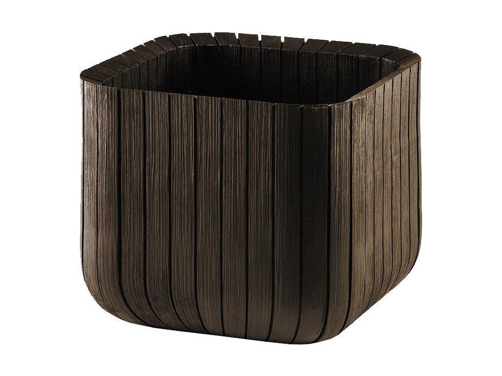 Květináč Keter Cube Planter S v elegantní hnědé barvě zaujme věrnou imitací přírodního dřeva a odolnou konstrukcí z lisovaného plastu. Díky objemu 21,5 litru se hodí pro pěstování rostlin na zahradě, terase i balkonu.