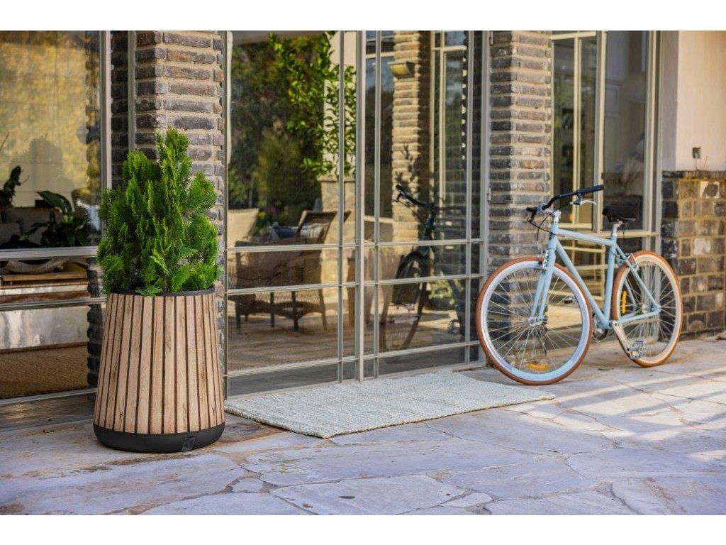 Díky unikátní technologii DecoCoat odolá květináč nepříznivým povětrnostním vlivům, rzi a hnilobě. Zároveň si zachová svou barvu. I po letech tedy vypadá, jako byste ho právě vyndali z obalu a smontovali. Textura stěn připomíná skutečné dřevo. Navíc je nenáročný na údržbu.