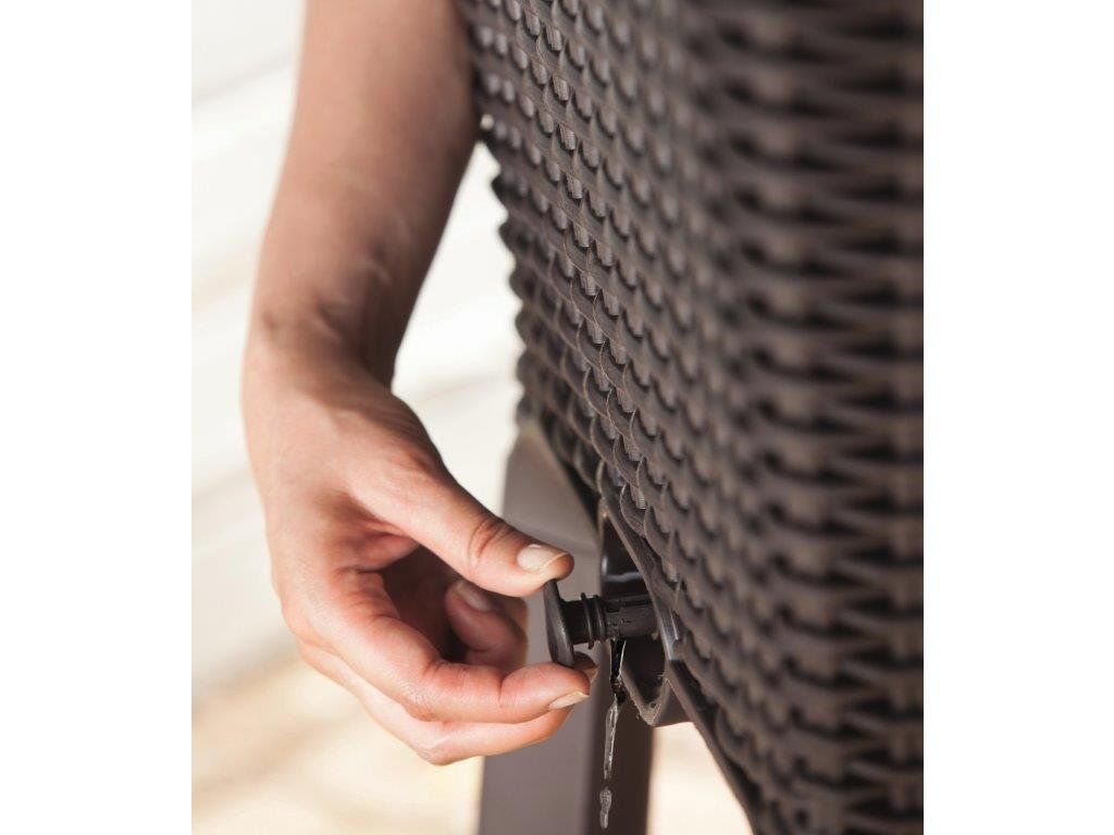 Indikátor úrovně hladiny vody vás bude informovat o stavu zavlažování rostlin kdykoliv půjdete okolo truhlíku. Zároveň ochrání rostliny před přelitím. Přebytečnou vodu lze upustit vypouštěcím kohoutkem na boku truhlíku.