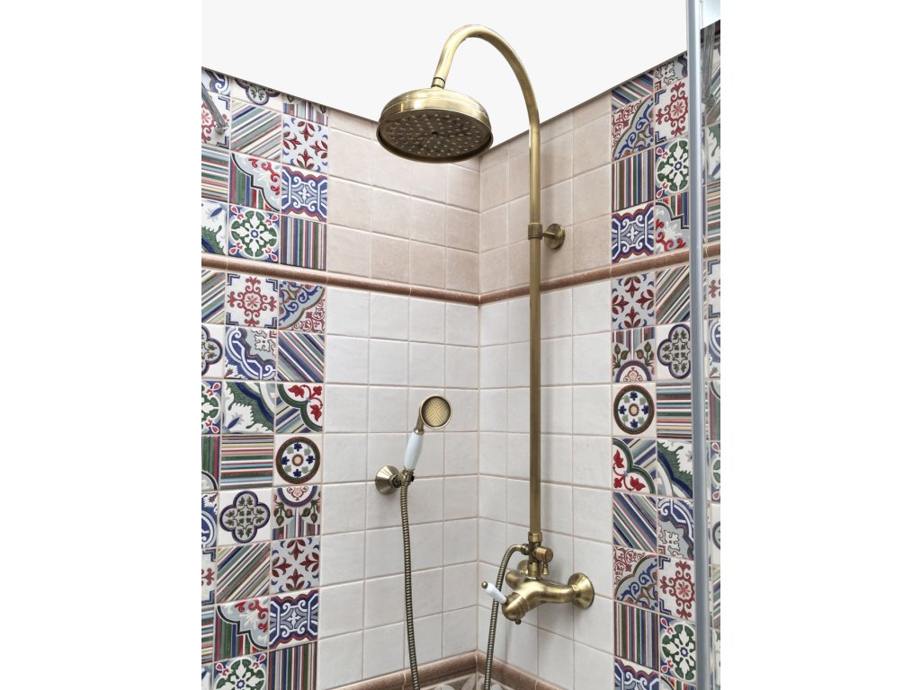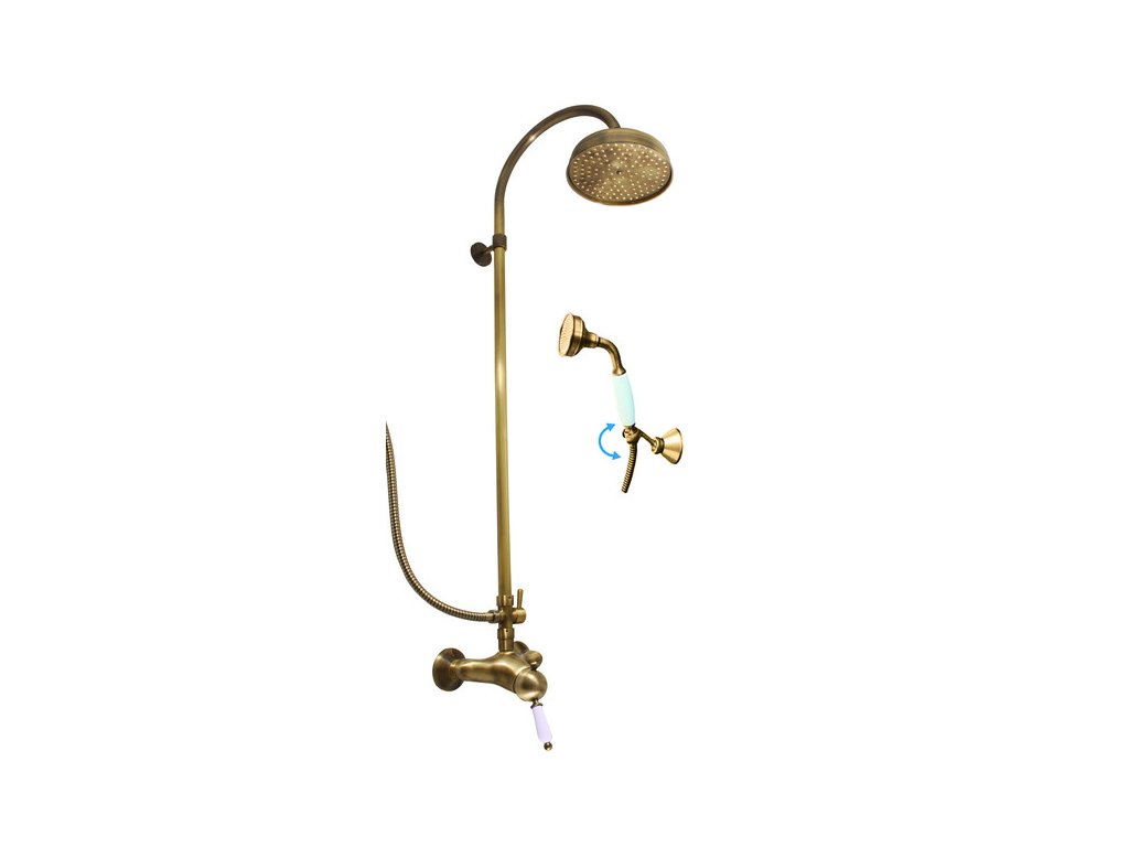 Vodovodní baterie sprchová LABE STARÁ MOSAZ s hlavovou a ruční sprchou se skládá z: