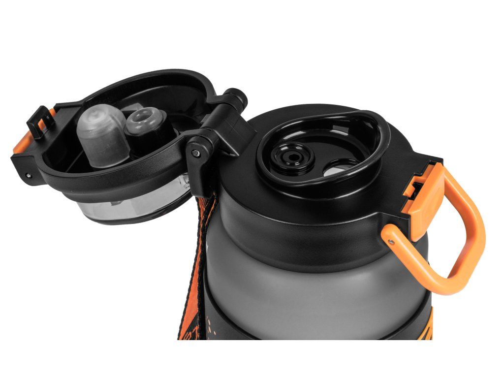 Silikonový kroužek po obvodu sportovní lahve zajišťuje, že láhev v ruce neklouže.Tento detail přispívá k bezpečnému a komfortnímu držení, což oceníte zejména při sportu nebo na cestách nebo při sportování, když máte mokré či zpocené ruce.