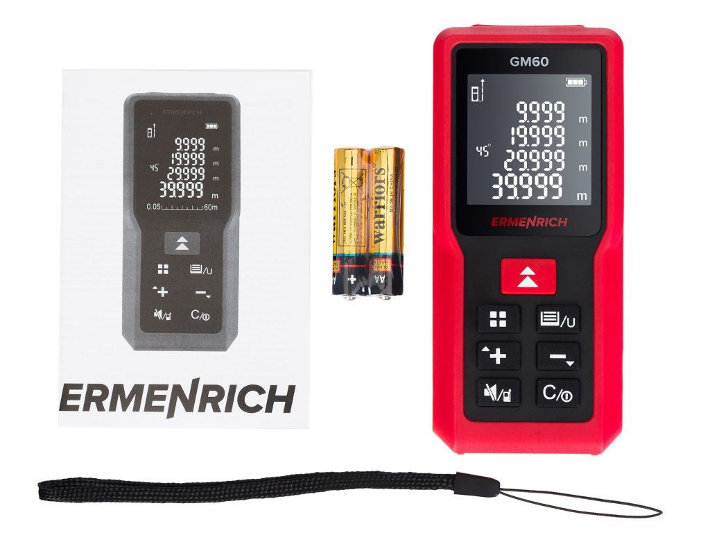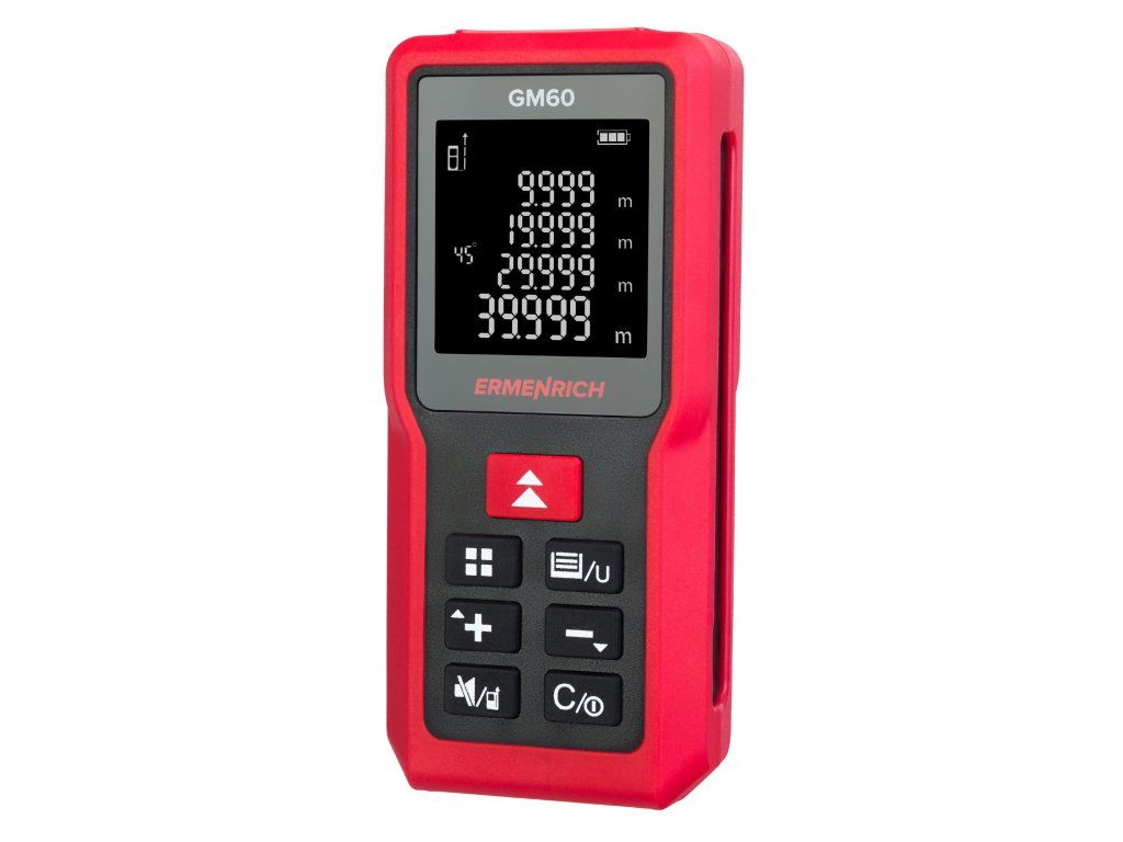 S laserovým měřičem Ermenrich Reel GM60 zjistíte vzdálenosti objektů, rozměry ploch a objemy místností. Využijete ho převážně pro inženýrské, stavební a renovační práce. Naměříte s ním hodnotu v rozsahu od 0,05 až do 60 metrů. Překvapí vás také funkce měření úhlů, ploch a objemů.