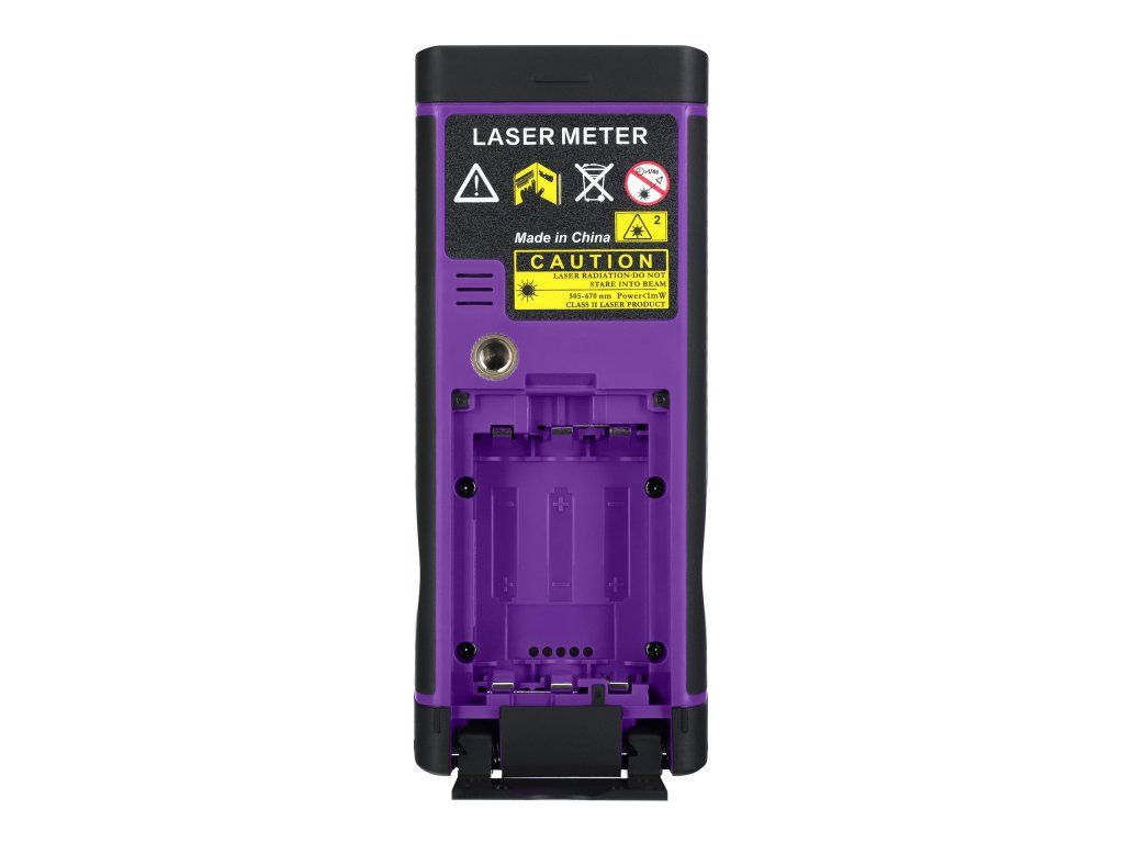 Měřič umožňuje pohodlné ovládání pomocí tlačítek a přehledný TFT displej poskytuje jasné zobrazení naměřených údajů. Přístroj poskytuje funkce pro výpočet vzdálenosti, plochy, objemu, sčítání, odčítání i měření výšky pomocí Pythagorovy věty. Změříte s ním i referenční bod. Jednotky měření i provozní režim (jednotlivé měření, skenování) si zvolíte dle potřeby. K dispozici máte paměť až na 30 skupin měření. Přístroj napájíte buď pomocí dobíjecí baterie, nebo pomocí 3x AAA baterií. Výhodou je také funkce automatického vypnutí po 3 minutách.