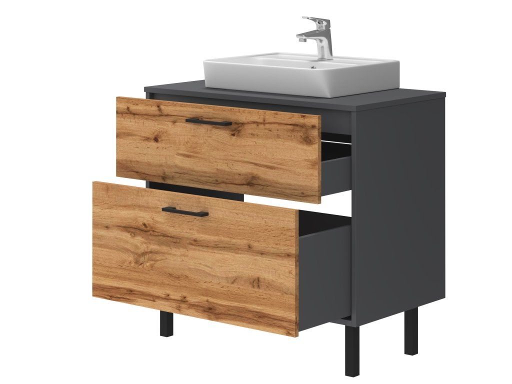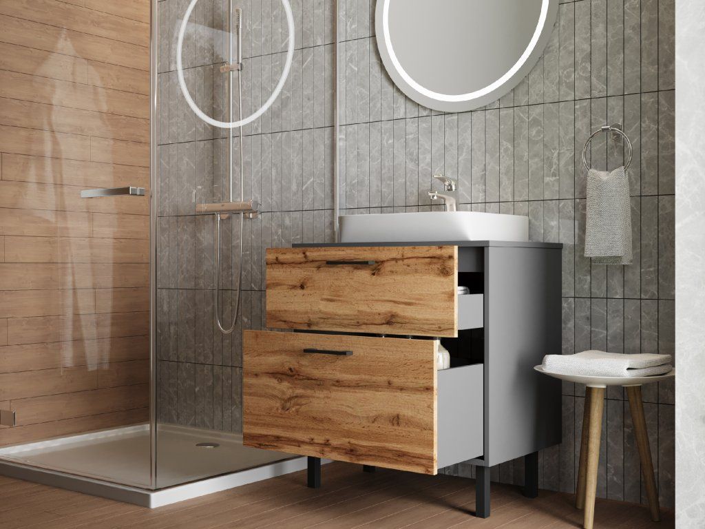 Lavedo Afina Neon Grey/Wotan Oak 80 koupelnová skříňka s umyvadlem, AF-80-NE-WO