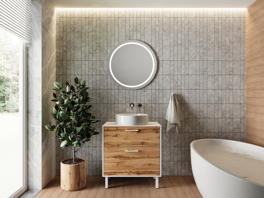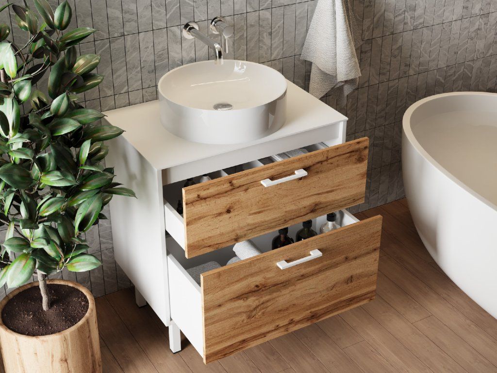 Lavedo Afina White/Wotan Oak 60 koupelnová skříňka s přípravou pro libovolné umyvadlo, AF-60-HPL-WO-GR2