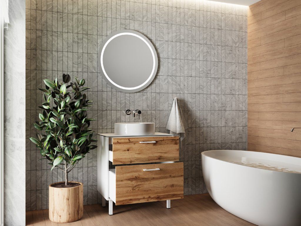 Lavedo Afina White/Wotan Oak 80 koupelnová skříňka s přípravou pro libovolné umyvadlo, AF-80-HPL-WO-WH