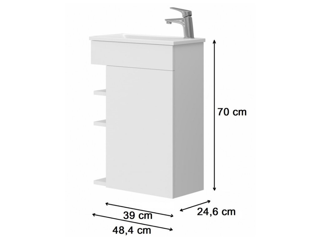 - rozměry skříňky včetně umyvadla - 50 x 70 cm (š,v,), hloubka pouze 24,6 cm