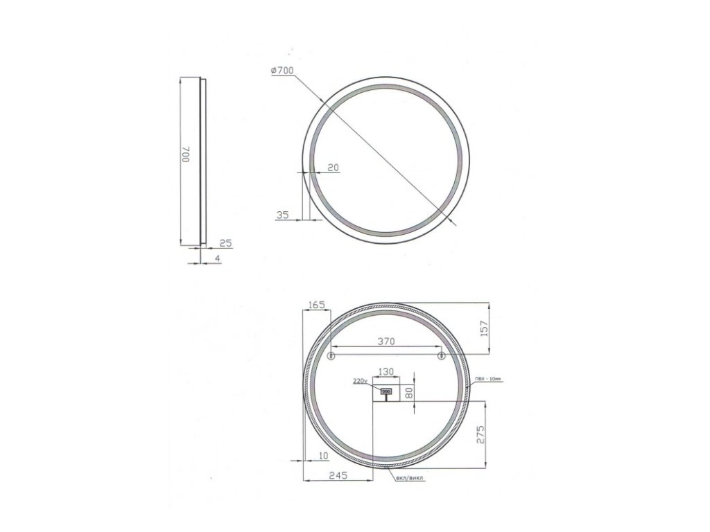 - průměr zrcadla - 70 cm
