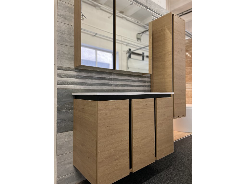 Představujeme Vám luxusní koupelnový nábytek, který zaujme především svým zajímavým provedením. Tato naprosto designová zrcadlová skříňka by rozhodně neměla chybět v žádné moderní stylové koupelně. Boční strany skříňky a celá konstrukce je vyrobena z MDF desky o tloušťce 16mm. Povrchová úprava je řešena dekorem dřeva. Velikou výhodou této skříňky je její soft close dovírání, díky kterému bude užívání skříňky naprosto pohodlné. Pociťte výhody a úložný prostor, který Vám tato skříňka dopřeje.