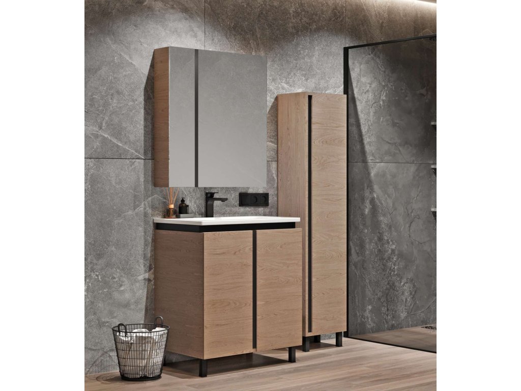 Představujeme Vám luxusní koupelnový nábytek, který zaujme především svým zajímavým provedením. Tato naprosto designová zrcadlová skříňka by rozhodně neměla chybět v žádné moderní stylové koupelně. Boční strany skříňky a celá konstrukce je vyrobena z MDF desky o tloušťce 16mm. Povrchová úprava je řešena dekorem dřeva. Velikou výhodou této skříňky je její soft close dovírání, díky kterému bude užívání skříňky naprosto pohodlné. Pociťte výhody a úložný prostor, který Vám tato skříňka dopřeje.