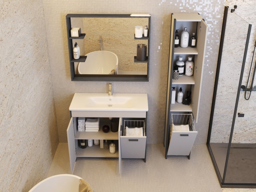 Designová a velmi praktická série koupelnového nábytku Broadway Black je nabízena v černém provedení rámu. Doplňkem každé koupelny je chytře zvolené zrcadlo, Broadway Black Vám splní to, co od koupelnového zrcadla očekáváte. Nabízí bohatý odkládací prostor v podobě poliček po obou stranách zrcadla. Zároveň nabízí LED osvětlení v provedení pásku v horní části rámu zrcadla.