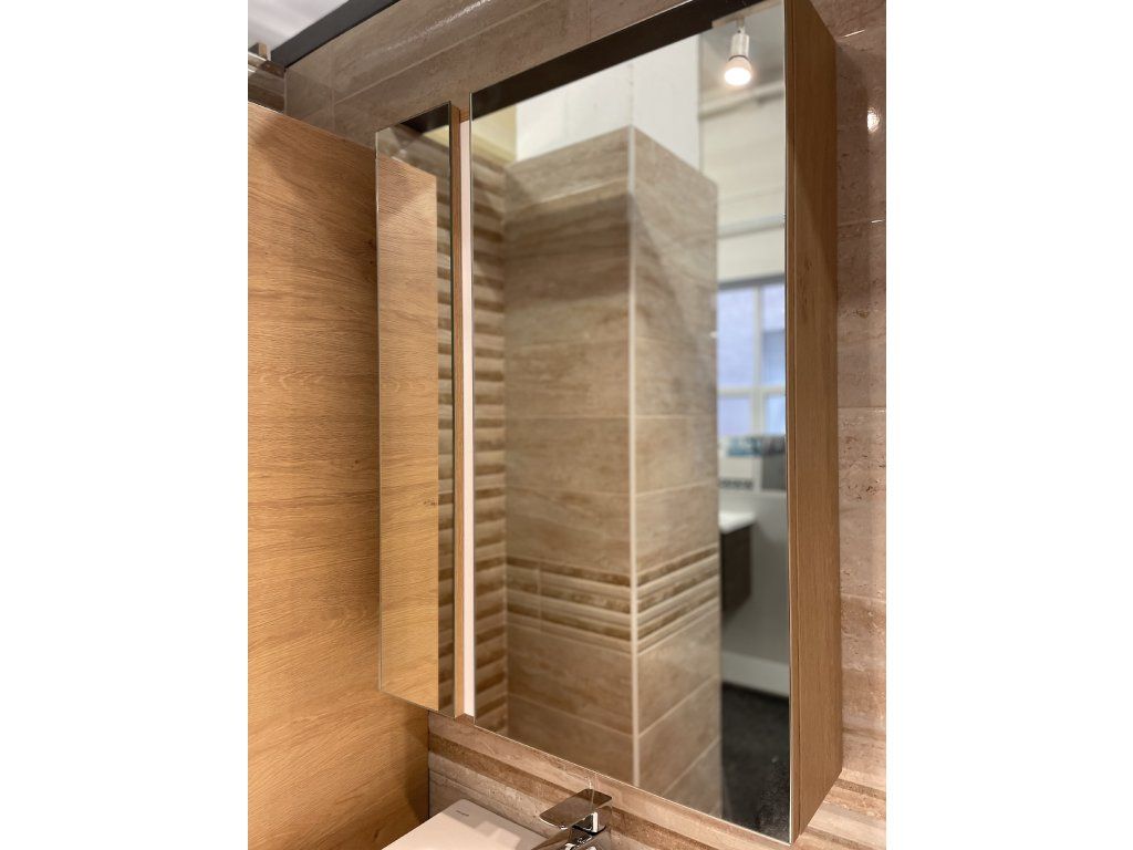 Představujeme Vám luxusní koupelnový nábytek, který zaujme především svým zajímavým provedením. Tato naprosto designová zrcadlová skříňka by rozhodně neměla chybět v žádné moderní stylové koupelně. Boční strany skříňky a celá konstrukce je vyrobena z MDF desky o tloušťce 16mm. Povrchová úprava je řešena dekorem dřeva. Velikou výhodou této skříňky je její soft close dovírání, díky kterému bude užívání skříňky naprosto pohodlné. Pociťte výhody a úložný prostor, který Vám tato skříňka dopřeje.