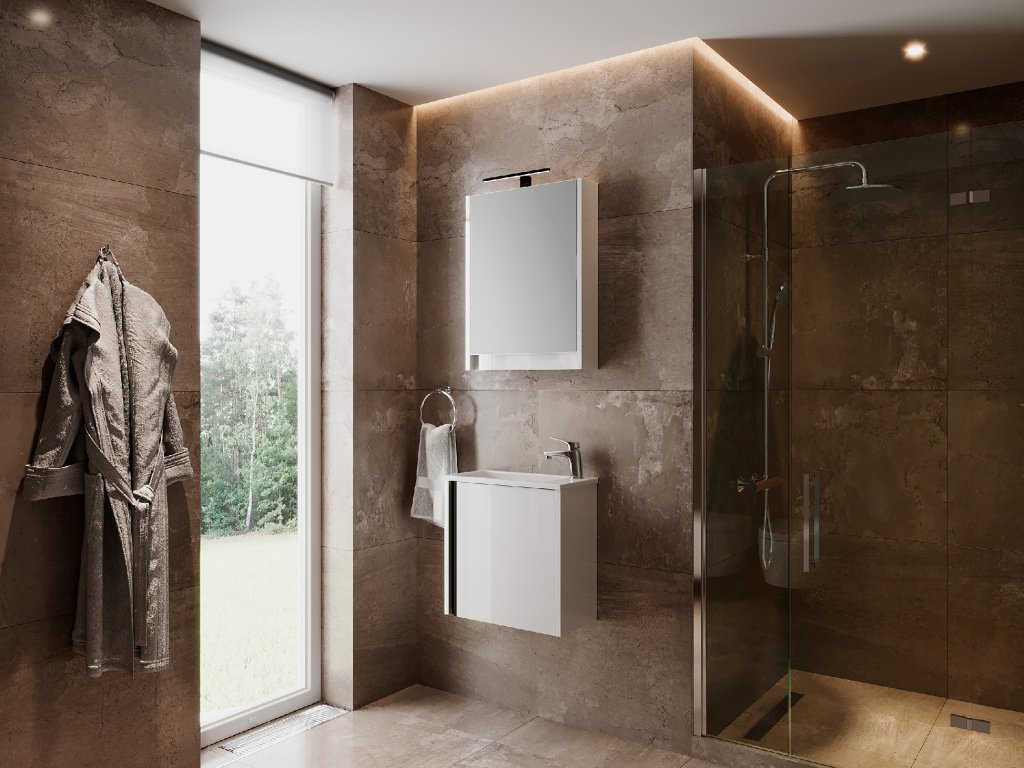 - designová zrcadlová skříňka s LED osvětlením