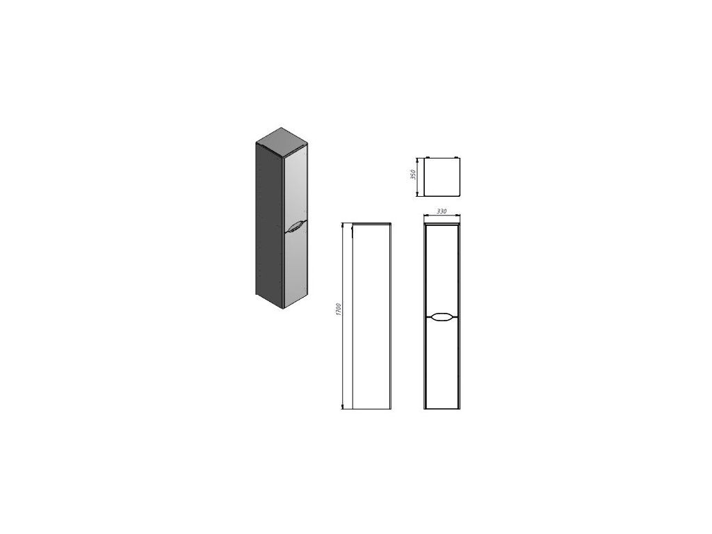 Lavedo Livorno Structure Grey 170 vysoká závěsná skříňka do koupelny, LVRP-170GREY
