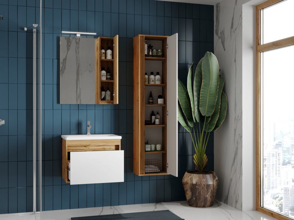 Představujeme Vám zcela nový luxusní koupelnový nábytek, který nadchne úplně každého. Tento naprosto designový sloupek by rozhodně neměl chybět v žádné moderní koupelně. Sloupek je vyroben z dřevotřísky o síle 16mm. Povrchová úprava je řešena barvou dubu. Sloupek je určen na zavěšení na zeď, což je zárukou bezproblémového úklidu. Velkou výhodou této skříňky je její soft close dovírání, díky kterému bude užívání doplňkového sloupku naprosto pohodlné. Pociťte výhody a úložný prostor, který Vám tento doplňkový sloupek dopřeje.