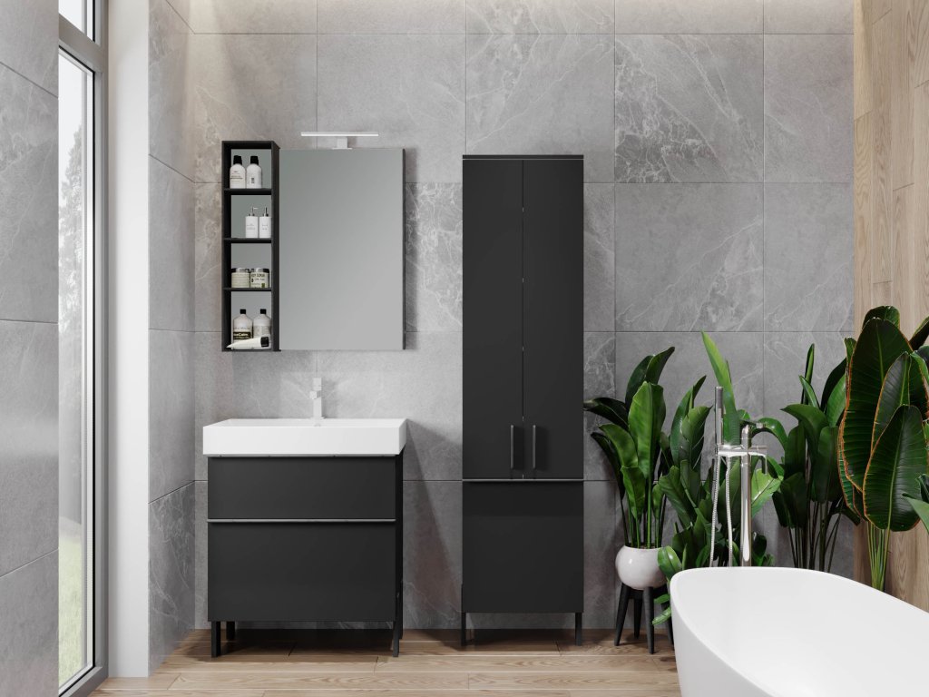 Zrcadlo Manhy je unikátní svými možnostmi. V případě, že Vám v koupelně chybí úložný prostor, ale chcete zachovat jednoduchost zrcadla, doporučujeme Vám zakoupit přídavný sloupeček s poličkami, který jednoduše přiděláte k zrcadlu Manhy. Jedná se o doplňkový sloupeček, který obsahuje čtyři úložné prostory, do kterých se vejdou veškeré kosmetické produkty, pro které je toto místo přímo dělané. Sloupeček je v černé matné barvě a naprosto dokonale ladí s černým rámem zrcadla a ostatním nábytkem ze série Manhy.