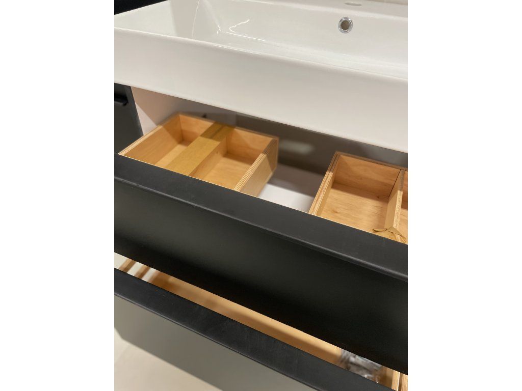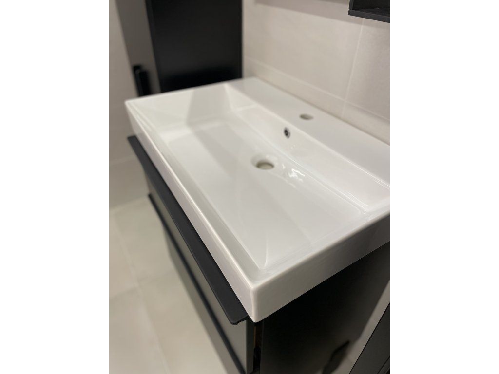 Moderní a praktická skříňka s umyvadlem se může pyšnit svým originálním tvarem keramického umyvadla. Umyvadlo je zajímavé především svým tvarem, který tvoří užitečné místo na odložení mýdla. Jedná se o velice designový koupelnový kousek a nadchne snad každého. V kombinaci s ostatním nábytkem ze série Manhy tvoří dokonalou souhru.