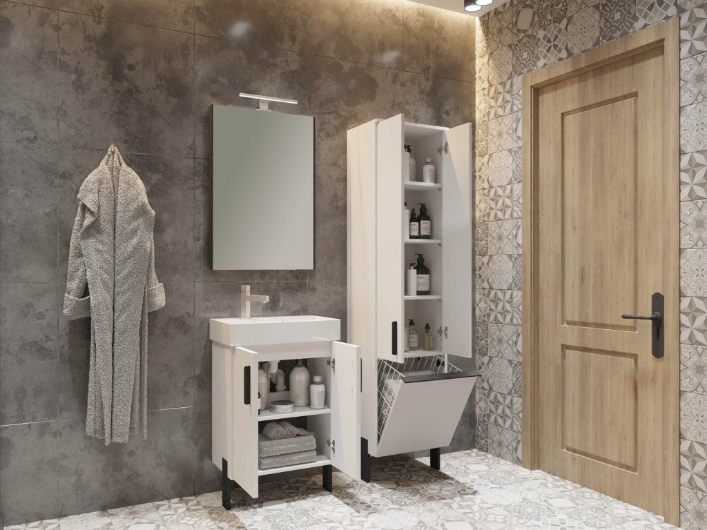 Koupelnová skříňka s umyvadlem Manhy Vás zaujme svou univerzálností. A proč?