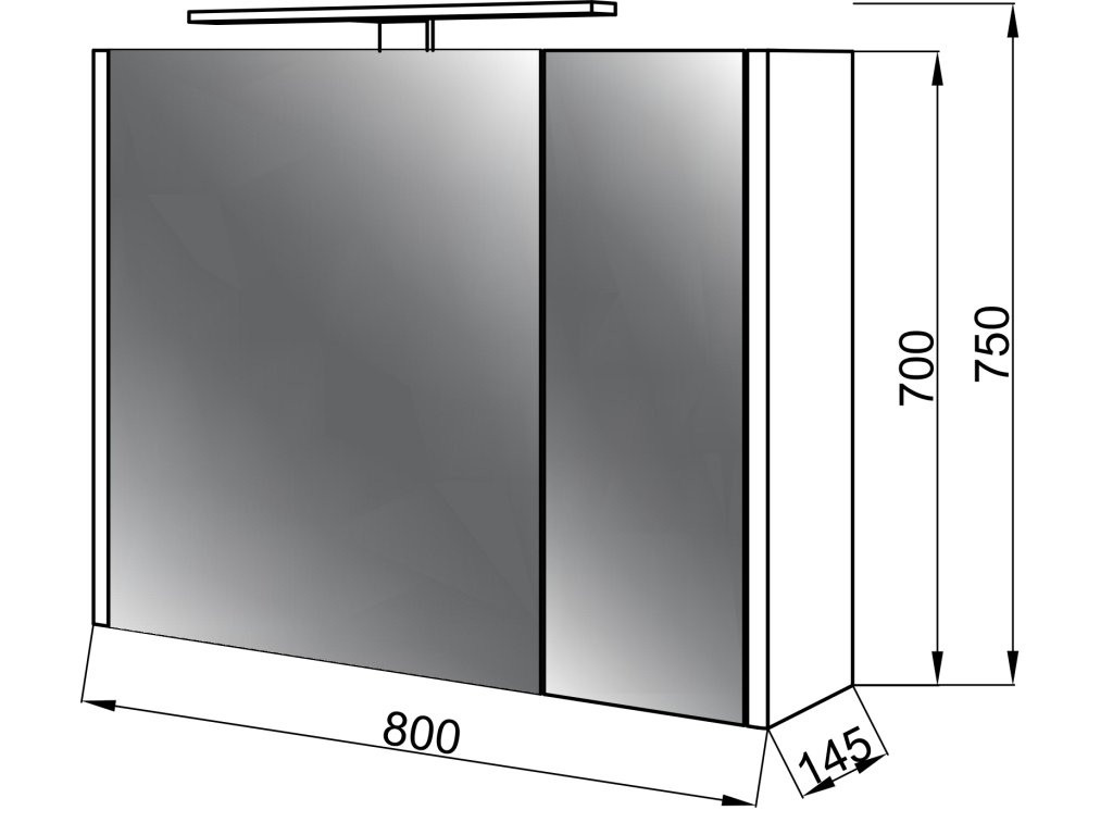 - rozměry skříňky včetně osvětlení - 80 x 14,5 x 75 cm
