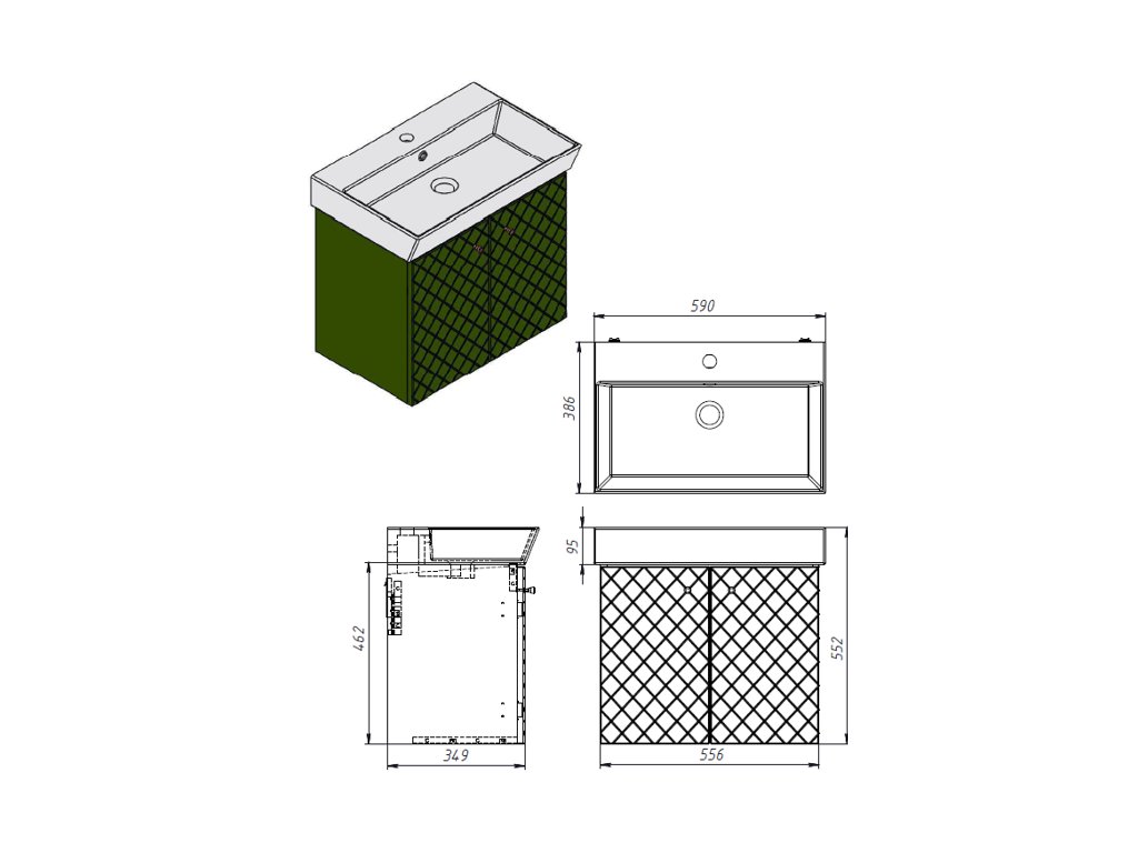 • rozměry skříňky včetně umyvadla - 59 x 38,6 x 55,2 cm (šířka, hloubka, výška)