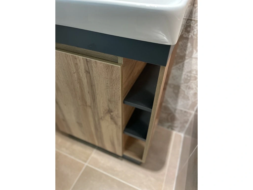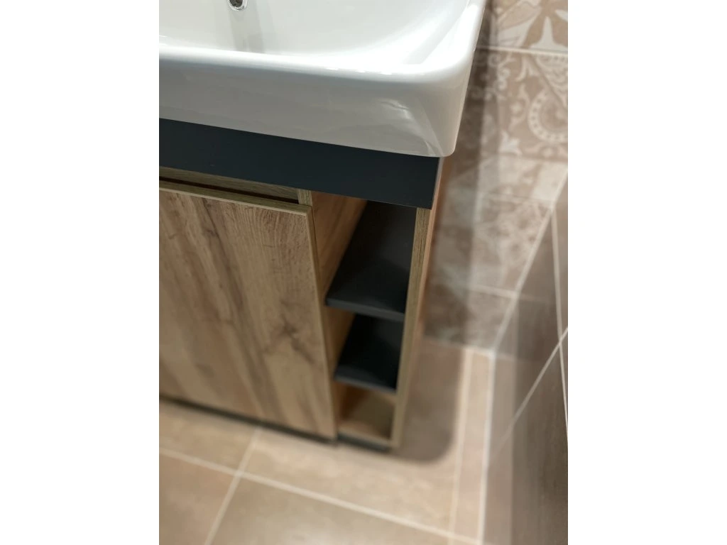 Keramické umyvadlo zvládne každodenní zatížení bez kompromisů a díky soft close dovírání se skříňka zavírá tiše a plynule. Dodání ve smontovaném stavu znamená, že ji stačí postavit a začít používat.