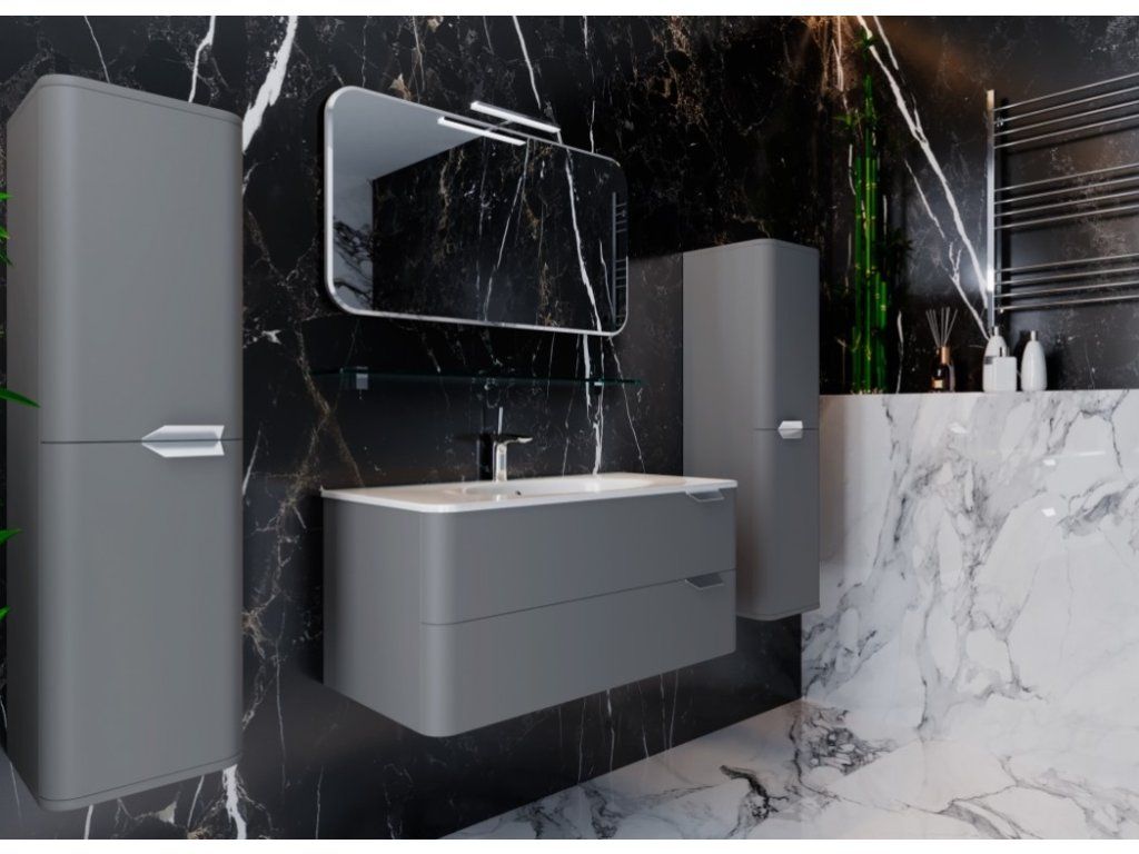 Představujeme Vám zcela nový luxusní koupelnový nábytek, který nadchne úplně každého. Tato naprosto designová skříňka s umyvadlem by rozhodně neměla chybět v žádné moderní koupelně. Skříňka je vyrobena z MDF desky 16mm. Umyvadlo, které je součástí skříňky, je vyrobeno z velice oblíbeného litého mramoru. Povrchová úprava je řešena šedou barvou v matu. Skříňka je určena na zavěšení na zeď, což je zárukou bezproblémového úklidu. Velkou výhodou této skříňky je její soft close dovírání, díky kterému bude užívání skříňky naprosto pohodlné. Pociťte výhody a úložný prostor, který Vám tato skříňka dopřeje.